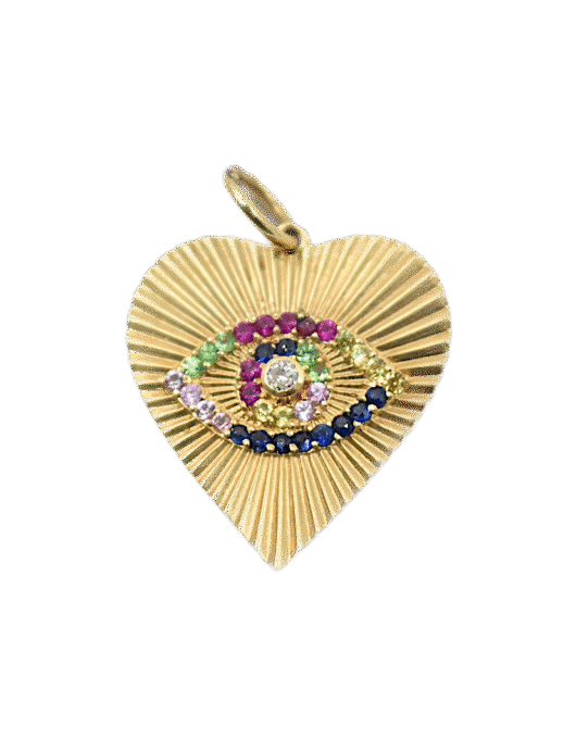 • 14K Gold Diamond & Multi Sapphire Evil Eye Heart Charm