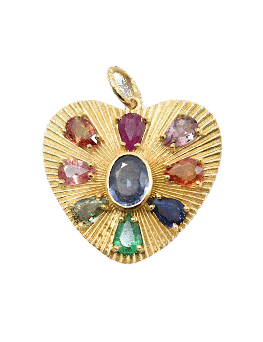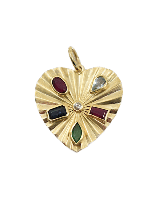 • 14K Gold Diamond & Multi Sapphires Fluted Heart Charm