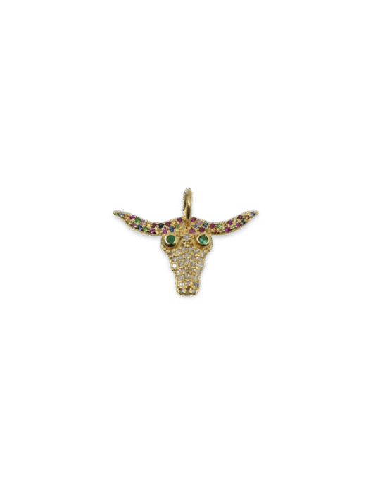 • 14K Gold Diamond Multi Sapphire Longhorn Bull Charm
