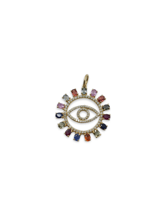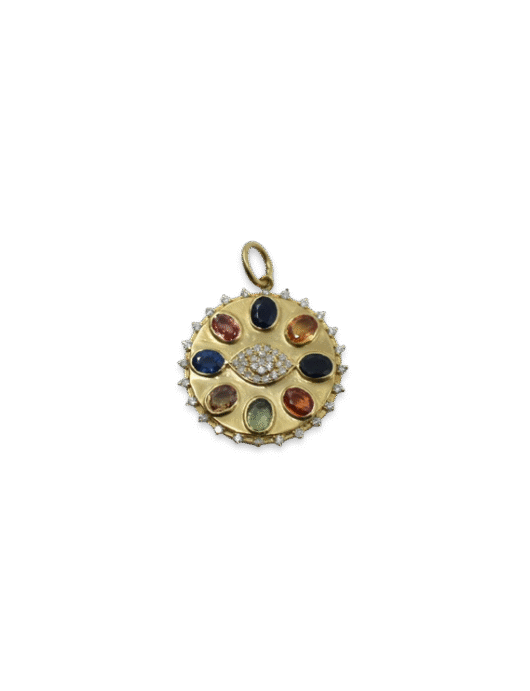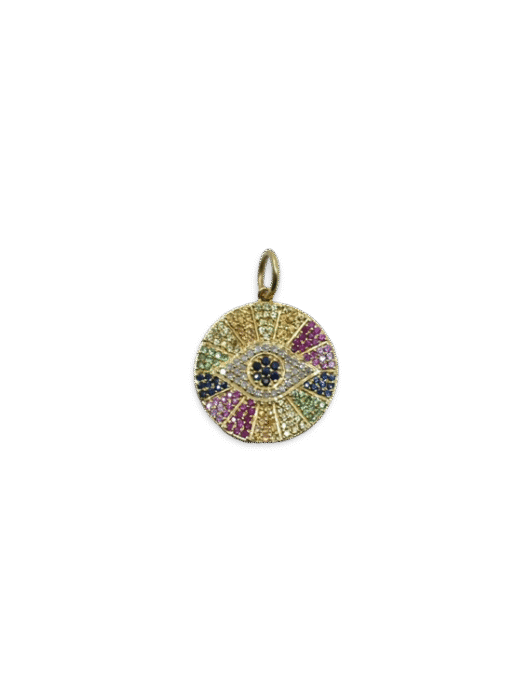 • 14K Gold Diamond & Multi Sapphire Evil Eye Disc Charm