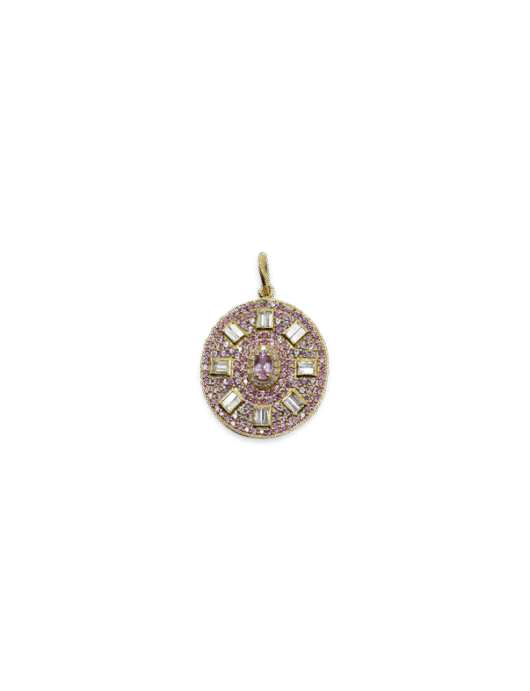 • 14K Gold Diamond Baguette & Pink Sapphire Oval Disc Charm