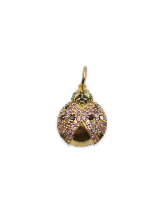 • 14K Gold Black Diamond & Pink Sapphire Ladybug Charm