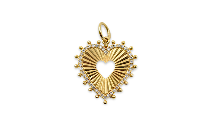 14K yellow gold heart with diamond and beaded edge and heart cutout in the center.