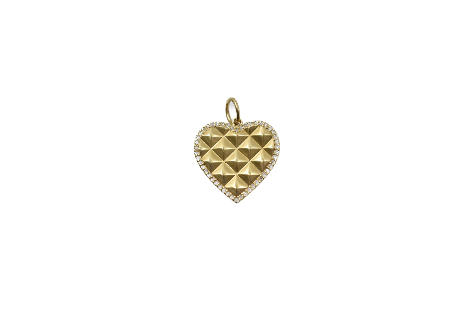 14K yellow gold tile-patterned heart with diamonds around the edge.