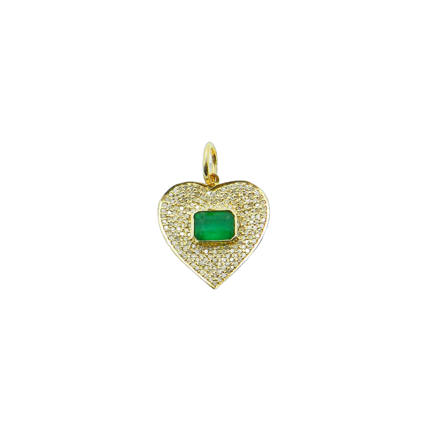 Emerald octagon studded with single cut diamonds in 14k yellow gold.